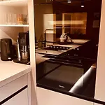 Os extras incluem chaleira elétrica, refrigerador e forno e cozinha totalmente equipada.